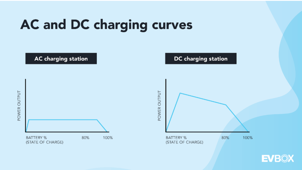Diagramme, die Wechselstrom- und Gleichstrom-Ladekurven zeigen.