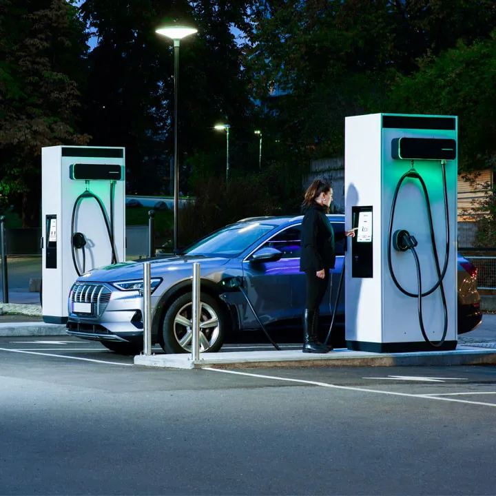 Las estaciones de carga de CA residenciales o comerciales de entre 7 kW y 22 kW tardan entre cuatro y ocho horas en cargar un vehículo eléctrico de vacío a lleno. Sin embargo, en lugar de esperar a que se agote la batería para cargar, muchos conductores de vehículos eléctricos lo hacen donde aparcan. Esto hace que los cargadores de CA sean una opción práctica tanto para empresas como para conductores.