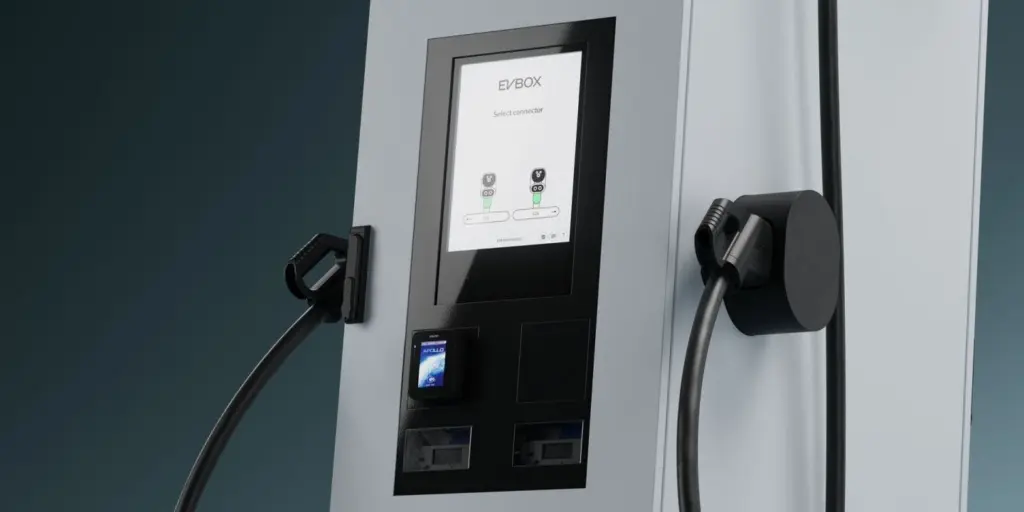 EVBox Troniq High Power viene con dos conectores CCS2 para cargar 2 autos simultáneamente. Su arquitectura modular maximiza el tiempo de actividad mientras que su escalabilidad permite tres salidas de energía: 320, 360 y 400 kW.