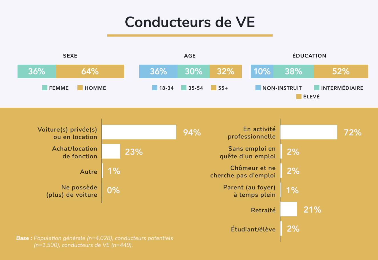 En comparación con la población general, los conductores de VE tienen más probabilidades de estar empleados, tener ingresos más altos y estar mejor formados. Según nuestra investigación, los conductores de VE actuales son predominantemente hombres, más jóvenes que la población general y tienen una renta familiar media de 150.000 euros. En consecuencia, suelen tener más dinero para gastar en servicios en las estaciones de servicio que el conductor medio.